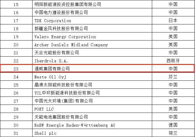 通威榮登“2022全球新能源企業(yè)500強榜單”