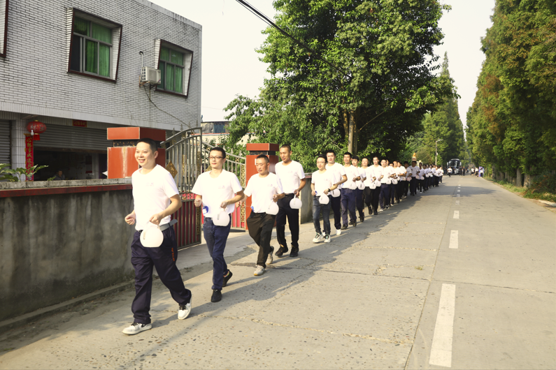 隨后,40位追光代表拎著聚光燈,有序地跑向通威前身眉山縣漁用配合飼料廠。這是劉漢元主席自行設計、自行施工、自行安裝建起的第一家工廠,也是西南地區第一家集約化魚飼料廠,見證了通威的第一次轉型開拓。在眉山縣漁用配合飼料廠原址,40位追光代表依次將聚光燈掛在背景裝置上,用光點匯聚起“通威之光”。