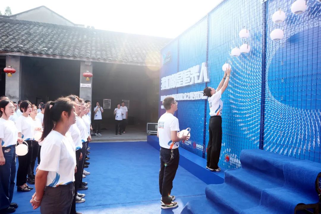 在蟆頤堰試驗“渠道金屬網箱式流水養魚”技術的原址,當天格外熱鬧。小河雖然同往日一樣,靜靜地流淌著,但卻讓現場的每一個人都心潮澎湃。只見代表通威各產業、各板塊的40盞聚光燈已經整齊排放,40位追光代表也已經就位,他們將帶著從夢想開始的地方匯聚而來的光,追光逐夢,向著未來再出發。