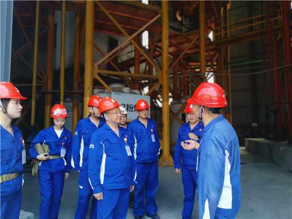 8月11日,通威股份副總裁、永祥股份總經(jīng)理李斌蒞臨永祥新材料現(xiàn)場檢查指導工作,公司常務(wù)副總經(jīng)理廖萬能、副總工程師吳銘生及相關(guān)部門負責人陪同。