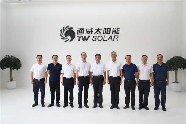 8月2日,成都市委常委、副市長王志華率成都市政府辦公廳副主任周新一行蒞臨通威太陽能金堂基地調研,金堂縣委書記、淮州新城黨工委書記鐘靜遠,縣委常委、縣總工會主席陳黎,副縣長曹波等領導陪同,通威太陽能(合肥)有限公司副總經理翟緒錦熱情接待。