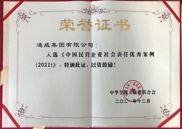 ▲通威入選《中國民營企業(yè)社會責任優(yōu)秀案例(2021)》榮譽證書
