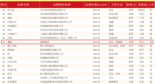 通威榮列2022《中國500最具價(jià)值品牌》前50強(qiáng)