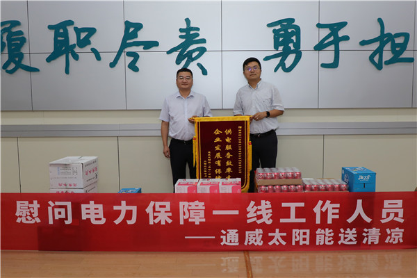 炎炎夏日送清涼,絲絲關(guān)愛入心田,送清涼活動(dòng)不僅送去了對(duì)供電保障支持的謝意,也鼓舞了供電公司保障一線工作者的士氣。未來(lái),通威太陽(yáng)能將與供電公司繼續(xù)保持密切聯(lián)系,加強(qiáng)溝通,關(guān)鍵時(shí)刻全力配合保民生、保安全,確保供電穩(wěn)定性、可靠性,確保公司在迎峰度夏期間穩(wěn)定生產(chǎn)。