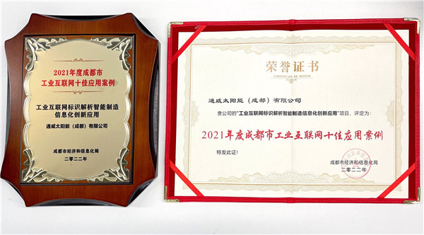 此次榮獲“2021 年度成都市工業互聯網十佳應用案例”表彰,是對公司在工業互聯網標識解析智能制造信息化創新應用的一致認可。未來,通威太陽能將持續依托工業互聯網平臺,積極推動公司智能化、信息化、數字化轉型升級,并充分發揮典范引領作用,打通整個光伏行業上下游的標識解析,降低標識數據解析成本,實現工業大數據的共享和集成應用,加速推動光伏行業的發展。