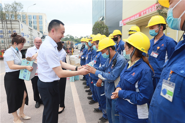 7月6日,五通橋地區的高溫橙色預警信號變更為高溫紅色預警。永祥股份及旗下所有公司黨、政、工配合,有條不紊地開展“夏日送清涼”高溫慰問活動,各公司產線安全穩定運行。