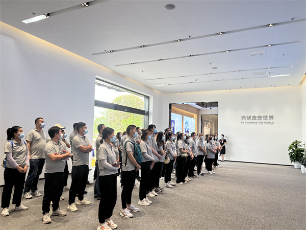 活動(dòng)中,通威食品“文化尋根團(tuán)”還走進(jìn)通威太陽(yáng)能眉山基地,在一項(xiàng)項(xiàng)實(shí)時(shí)數(shù)據(jù)和廠區(qū)微觀全景沙盤的展示下,全面了解通威雙綠色產(chǎn)業(yè)鏈布局、發(fā)展成就,以及通威太陽(yáng)能在自動(dòng)化生產(chǎn)、綠色發(fā)展等方面作出的重要貢獻(xiàn)。走進(jìn)無(wú)人制造車間,一支支特殊的機(jī)械臂有序揮舞,一輛輛無(wú)人駕駛的IGV小車往來(lái)穿梭,全封閉的智能制造高效太陽(yáng)能電池片自動(dòng)化生產(chǎn)線高速運(yùn)轉(zhuǎn),充分展現(xiàn)了通威智能智造的領(lǐng)先實(shí)力,大家的自豪感油然而生。