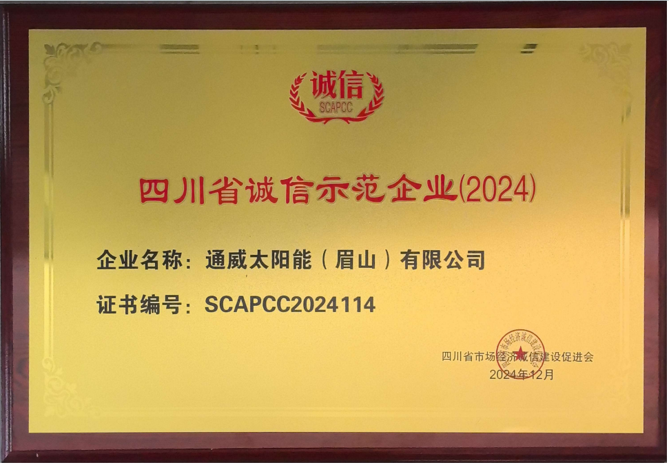 通威太陽能多家公司榮膺“四川省誠(chéng)信示范企業(yè)”榮譽(yù)稱號(hào)
