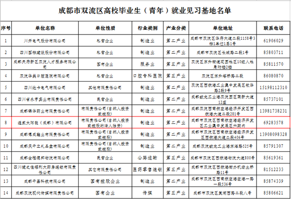 通威太陽能成功申報雙流區(qū)高校畢業(yè)生見習基地