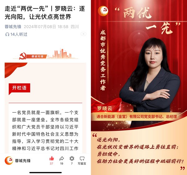 通合新能源(金堂)有限公司黨支部書記羅曉云入選蓉城先鋒“走近兩優(yōu)一先”專題人物報(bào)道