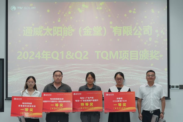通威太陽(yáng)能(金堂)有限公司順利舉行季度TQM評(píng)選暨創(chuàng)新創(chuàng)優(yōu)評(píng)選活動(dòng)頒獎(jiǎng)儀式