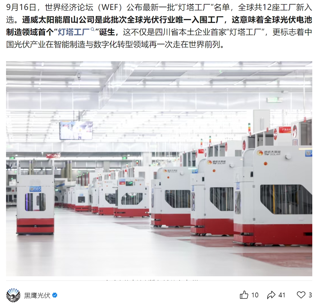 通威太陽(yáng)能榮膺全球光伏電池制造領(lǐng)域首個(gè)“燈塔工廠” 引媒體齊聚焦