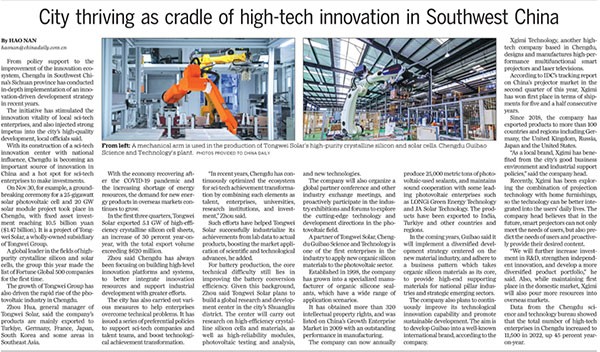 通威太陽能雙流基地榮列“2023年四川企業技術創新發展能力100強”名單