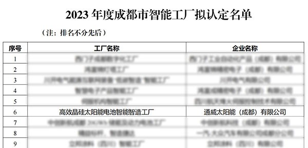 通威太陽能雙流基地榮列“成都市智能工廠”名單