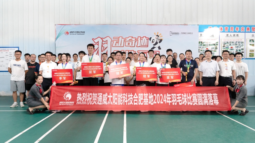 本次羽毛球賽的圓滿落幕,標志著通威太陽能科技在員工活動和員工身心健康方面又邁出了堅實的一步,期待未來有更多類似的活動,讓員工在工作之余找到快樂,增強體質,并將賽場中戒驕戒躁的定力、高效執行的干勁、只爭朝夕的拼勁運用到今后的工作中,與公司共贏共創,共同為通威太陽能科技穩步發展貢獻力量。