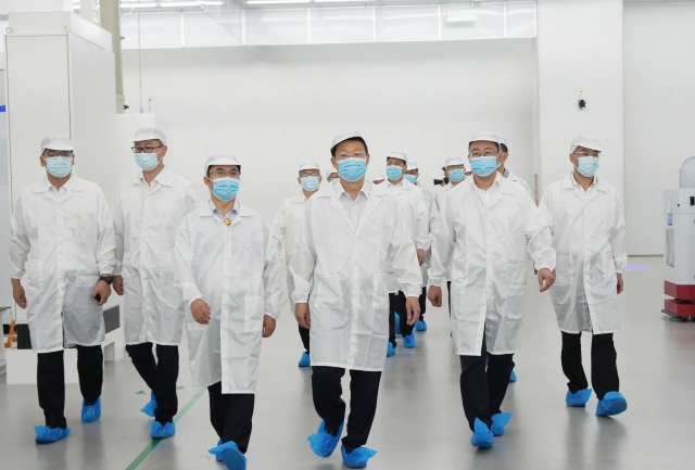 在調研過程中,黃河市長一行深入通威太陽能眉山公司S4智能制造生產車間,詳細視察了車間的生產運行情況。姚總就眉山公司四期項目的設備進場、調試、安裝及投產情況向黃河市長一行進行了詳細匯報。聽取匯報后,調研組對該項目的高效推進給予高度認可,勉勵公司保持發展勢頭,為推動眉山經濟的綠色、可持續發展貢獻更多的力量。