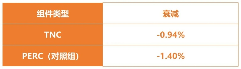 02. 在極端晝夜溫差的戈壁環境下,通威TNC組件運行14個月衰減為0.94%