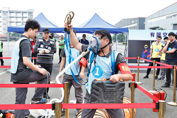 據悉,此次賽事共8個產業社區、8支員工代表隊參加,涵蓋有限空間作業賽、生命通道挑戰賽、危化品檢維修作業接力賽三大項目,以“人人講安全,個個會應急——暢通生命通道”為主題,充分考驗參賽隊員的專業素養和技能水平。通威參賽隊伍充分發揚 “通力合作,威力無窮”的企業精神,在比賽中團結協作、沉著應對,不負眾望斬獲此次賽事第一名。