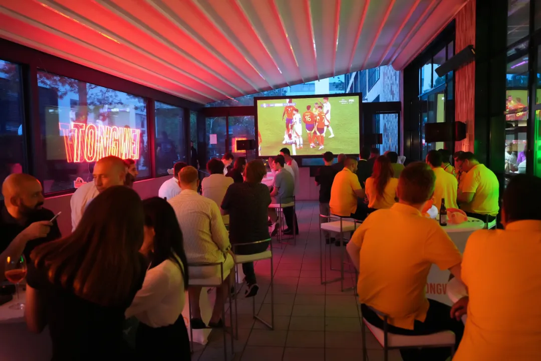 在通威橙的映襯下,慕尼黑的夜晚被點燃,通威之友身著通威球衣,一同觀看歐洲杯精彩賽事,見證通威在光伏領域的成長與成果,仿佛置身于充滿活力與激情的足球賽場,享受美食與音樂的雙重盛宴。