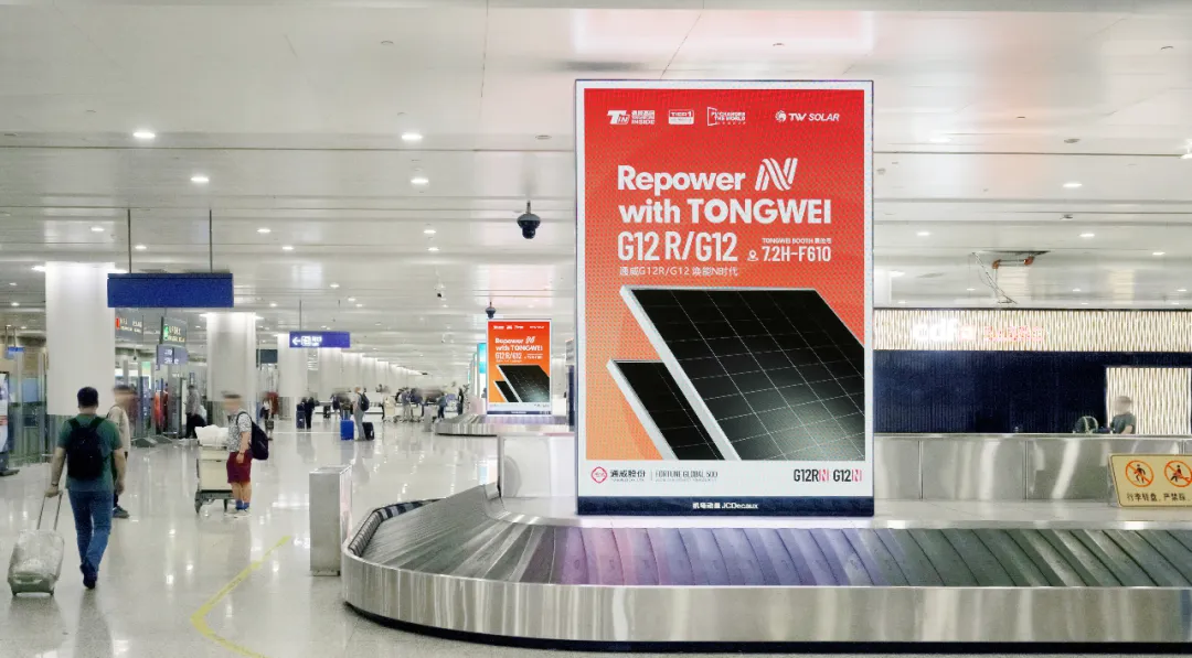 當前,全球“雙碳”進程深入推進,以光伏為代表的可再生能源高質量發展新篇章正在不斷繪就。上海是我國與國際交流的重要門戶,是華東地區第一交通樞紐。第十七屆SNEC展會前夕,近500塊通威光伏新能源產業鏈品牌形象廣告,特別是以“通威G12R/G12 煥能N時代”為主題的高效組件品牌形象廣告,閃耀上海各大交通樞紐及高客流量區域,面向過億人次展示品牌形象,實現持續性品牌曝光。