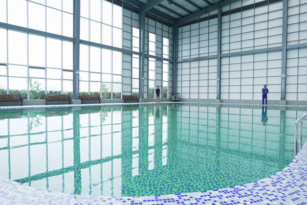 位于體育館旁的永祥新能源游泳館,擁有一個(gè)室內(nèi)泳池和兩個(gè)室外泡池,并配備了完善的更衣室、淋浴間和洗手間等基礎(chǔ)設(shè)施,旨在滿足公司員工對(duì)游泳健身的基本需求。在水質(zhì)和安全管理方面,該館采用了先進(jìn)的過(guò)濾技術(shù),并設(shè)置了泳池循環(huán)水處理系統(tǒng),經(jīng)過(guò)嚴(yán)格的水質(zhì)檢測(cè),確保水質(zhì)達(dá)到健康標(biāo)準(zhǔn)。