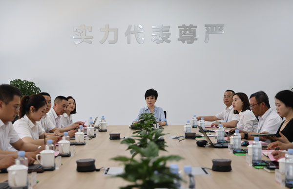 聽取項目建設情況介紹后,管亞梅董事長對通威綠材(廣元)項目的建設給予了充分肯定,并表示,在項目建設過程中,施工安全、質量、進度均得到了有效保障,管理團隊和全體員工攻堅克難,展現出了高度的精氣神。新項目建設一定要做好成本管控,人員一定要充分發揮專業水平,提前發現問題、解決問題,項目各方面一定要把控細節,以用心服務的理念,為員工營造家庭的溫暖;以降本增效為導向,將通威綠材(廣元)項目打造成當地的城市名片。