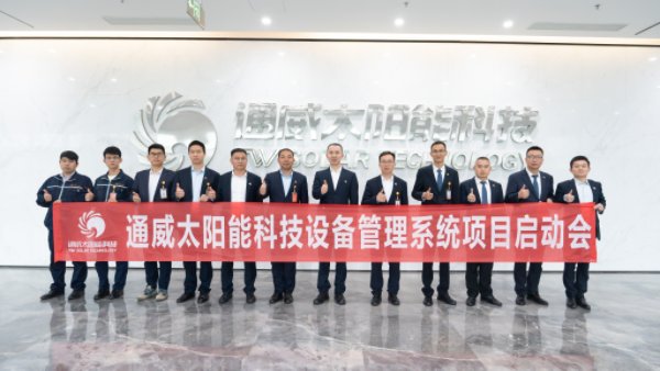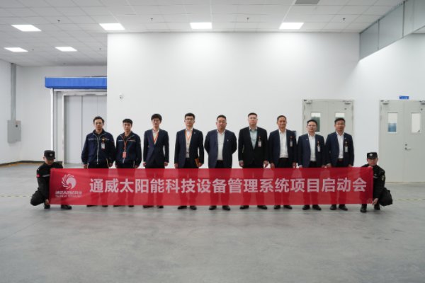 4月28日,通威太陽能科技設備管理系統項目啟動會在合肥、鹽城、金堂、南通四大基地成功召開。通威股份總裁助理、通威太陽能科技有限公司總經理蕭圣義,通威股份信息總監周勇,通威太陽能(鹽城)有限公司副總經理翟緒錦,通威太陽能副總經理宋梟,通威太陽能(四川)有限公司總經理助理朱劍誠,通威太陽能(合肥)有限公司總經理助理李冬生,通威太陽能科技總經理助理謝俊杰,金蝶中國助理總裁郭旭光,金蝶四川省公司總經理侯建斌及金蝶實施顧問出席會議。公司各部門負責人及員工近110人參會。