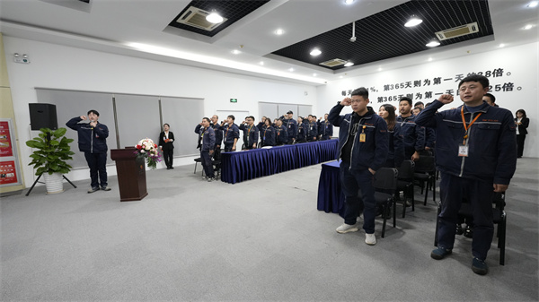 活動圍繞兩個篇章展開,團隊熔煉環節,通過“企業文化雙解碼”這一拓展活動,凝聚班組協作共識,強化企業文化認知。開班儀式環節,人力資源部就項目背景、規劃及考核細則作闡述,明晰學員培養期學習路徑,學員代表就未來發展及變化提出了思考及期待,并深度分享了對于“如果任何一個人或企業的發展和成功是偶然的,那么失敗遲早是必然的”這一文化語錄的實踐感知。一聲聲氣宇軒昂的宣誓將開班儀式氛圍推向了高潮,展示了班組項目學員蓄勢待發的決心。