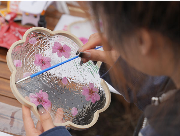 桃花書簽制作現場