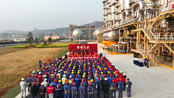 杜總向政府領(lǐng)導(dǎo)多次親臨現(xiàn)場(chǎng)協(xié)調(diào)相關(guān)事項(xiàng)、實(shí)現(xiàn)高位推動(dòng)、為項(xiàng)目發(fā)展提供了強(qiáng)有力的保障表示衷心的感謝。同時(shí)感謝集團(tuán)、股份的大力支持及兄弟公司的有力支撐,堅(jiān)定了乘勢(shì)而上的信心。365天的堅(jiān)守付出、持續(xù)奮戰(zhàn),一座現(xiàn)代智能型化工廠已經(jīng)落成?!捌D難困苦,玉汝于成”,云南通威人正是帶著這樣的信念克服種種困難,努力到無能為力,抱著必勝的信心做到階段性實(shí)現(xiàn)。杜總強(qiáng)調(diào),目標(biāo)不僅是用來實(shí)現(xiàn)的,更是用來超越的。新的征程意味著新的挑戰(zhàn),在二期投產(chǎn)目標(biāo)的引領(lǐng)下,要提前規(guī)劃部署,有序推進(jìn)。全員凝心聚力、勇于擔(dān)當(dāng)、團(tuán)結(jié)協(xié)作,充分發(fā)揮專業(yè)鼎力作用,嚴(yán)守安全紅線,嚴(yán)格執(zhí)行標(biāo)準(zhǔn)+清單,一步步穩(wěn)扎穩(wěn)打,確保二期項(xiàng)目順利調(diào)試并開車成功。