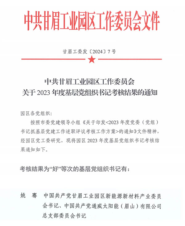 通威太陽(yáng)能眉山基地黨總支書記姚騫被甘眉工業(yè)園區(qū)黨委評(píng)為“2023年度優(yōu)秀基層黨組織書記”