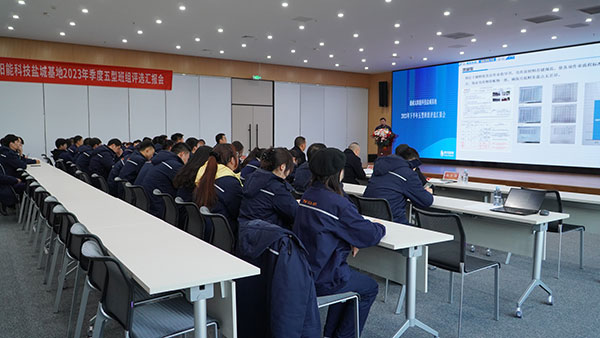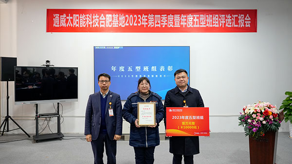 為加強優秀五型班組建設,打好2023年收官戰,提升一線班組“技能型、效益型、管理型、創新型、和諧型”的建設能力及基礎管理水平,充分發揮“五型”班組團隊精神,營造“比、學、趕、幫、超”的文化氛圍,同時總結經驗,樹立典型,提高員工工作積極性,近日,通威太陽能科技各基地組織開展了2023年第四季度暨年度五型班組評比表彰活動。來自各基地生產體系部門負責人及班組代表共計100余人參與活動。