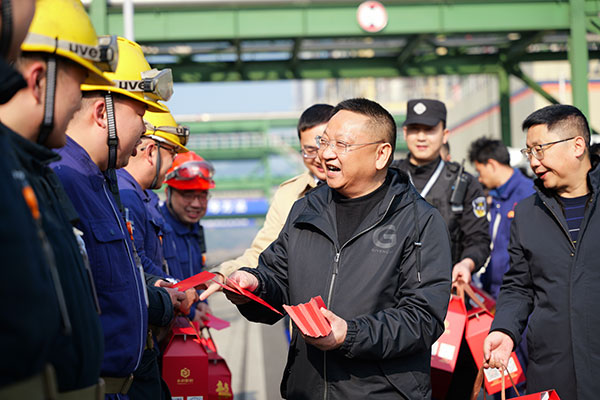 2月10日,大年初一,通威股份副總裁、永祥股份總經理、永祥新能源總經理李斌帶隊,分別深入永祥樂山基地各分子公司一線,慰問春節期間堅守崗位的員工,為員工送上節日的問候、祝福和深切的關懷。永祥股份副總經理、永祥新能源常務副總經理羅周,永祥股份安全環??偙O楊武明,永祥股份總經理助理王玲等領導參加慰問。