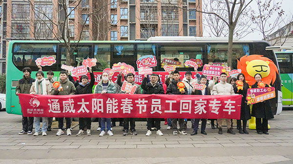 一元復始萬象新,歲月流金盛年來。年,是每個中國人的期盼,在此辭舊迎新之際,通威太陽能多措并舉穩保障、送溫暖,通過派送春禮包、回家專車、年夜飯、春節福利餐、新春游園會等系列活動向員工們送去新年關懷,讓無論是返鄉歸家,還是堅守生產、建設一線的奮斗者們都能過上一個安心年、暖心年!