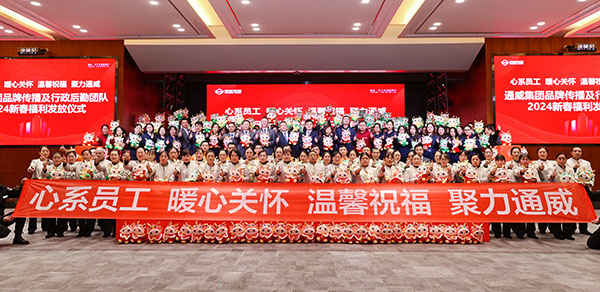 新春佳節即將到來,當天集團品牌傳播及行政后勤體系還隆重舉行了2024新春福利發放儀式,黃總及管理團隊為全體員工發放了新春福利大禮包,并代表主席對大家在過去一年里的辛勤工作和兢業奉獻表示衷心的感謝,希望大家在新的一年里再接再厲,再創佳績。大家紛紛表示,新春禮包不僅讓大家提前感受到了濃濃的年味,更感受到了主席和集團對員工的熱切祝愿和真切關懷。新的一年,全員將攜手同心、接續奮斗,全力以赴為通威事業作出新的更大的貢獻!