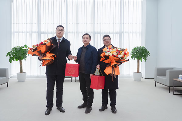 慰問交流團一行抵達彭山基地,代表眉山天府新區管委會向通威太陽能員工拜早年、送祝福,感謝大家對眉山天府新區經濟發展所做出的努力和貢獻,并現場慰問了公司人才代表,親自送上鮮花及節日祝福。