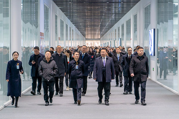 1月29日,東坡區兩會代表及委員集中至我司參觀調研,眉山市東坡區委書記彭盆、東坡區人大常委會主任商志忠、東坡區政協主席郭建華、東坡區政協副主席李繼成帶隊,甘眉工業園區黨工委書記鄧強、黨工委專職副書記楊青松陪同,通威太陽能眉山基地總經理助理姚騫熱情接待。