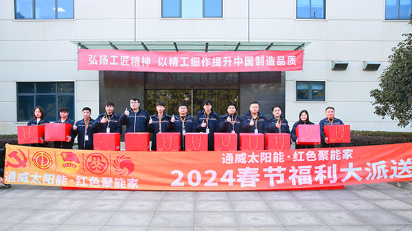 濃情迎新春,福利暖心田。在一年一度的新春佳節到來之際,為感謝大家的辛勤付出,讓每位員工都能感受到企業給予的溫情,增強企業凝聚力和職工歸屬感。通威太陽能各基地有序啟動春節福利派送活動,當前,通威太陽能安徽公司、眉山基地、金堂基地、通合項目已完成新春福利發放,讓每位員工都早早感受到了來自公司的新春祝福。