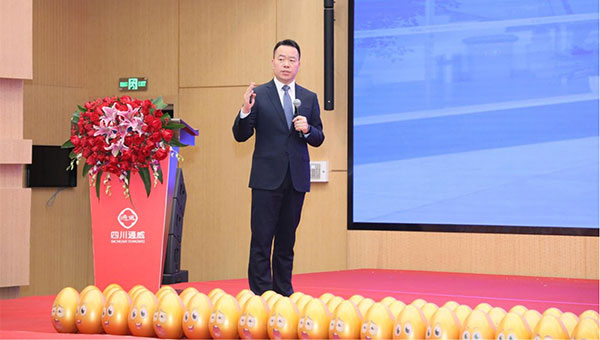 隨后,通威農發華西片區畜禽技術總監黃明在《做質量 助發展》的主題報告中,簡述通威畜禽的增量情況與通威的技術實力以及科研力量,從通威畜禽產品設計標準方面,分商品豬、母豬、肉鴨等重點講解,通威如何打造畜禽產品力,助力養殖增效;另外,通威原料價值采購,工廠標準管理,技術領先,原料穩定,質量如一。通威好產品,助力用戶實現養殖效益最大化。