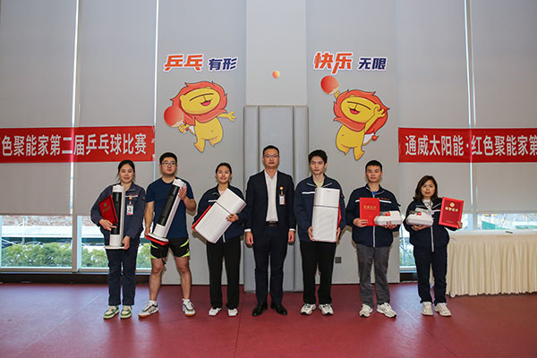 為搭建展示、交流的平臺,宣揚積極向上、輕松活力的企業文化,12月14日,通威太陽能雙流基地紅色聚能家舉辦了第二屆乒乓球比賽,吸引了來自各廠部的40余位乒乓球愛好者參與,通威太陽能雙流基地總經理助理徐濤現場觀賽并為獲獎團隊頒獎。