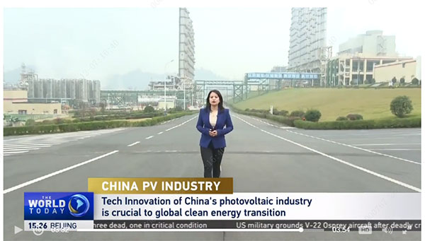 12月7日下午3點,CGTN世界新聞(英語版)以《中國光伏產業:中國光伏產業的技術創新對全球清潔能源轉型至關重要》為題進行報道,聚焦通威永祥多年以來向“綠”而行,高質量發展。