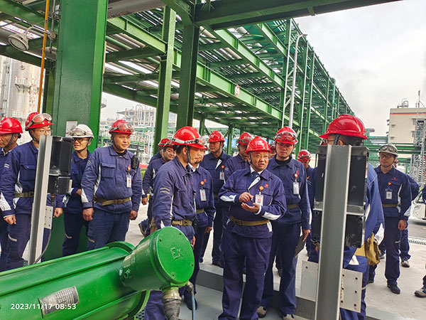 圍繞公司“高效經營,執行到位”的經營管理思路,深入踐行“安全穩定,改善提升,團隊建設”三大主題,11月17日,通威股份副總裁、永祥股份總經理李斌,永祥股份副總經理、永祥新能源常務副總經理羅周,永祥股份安全環保總監楊武明等公司管理干部對永祥新能源精餾二工段進行現場安全檢查,工段管理人員全員參與。