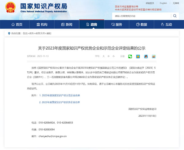 2023年度國(guó)家知識(shí)產(chǎn)權(quán)優(yōu)勢(shì)企業(yè)評(píng)定結(jié)果公示