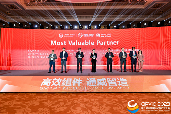 當天的2023第六屆中國國際光伏產業大會暨通威組件新品發布&全球合作伙伴大會圓滿落幕。未來,通威將繼續以高效、誠信、可靠的合作交流橋梁,與全球合作伙伴一道,共享發展機遇,共建良性行業生態,共贏美好未來。