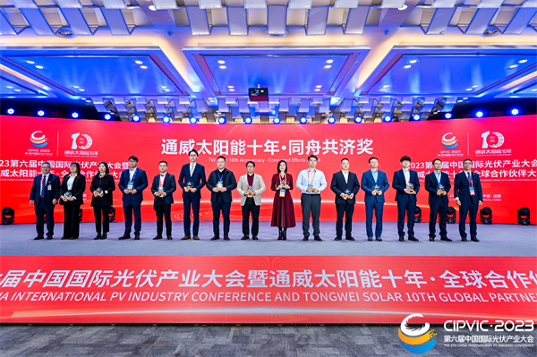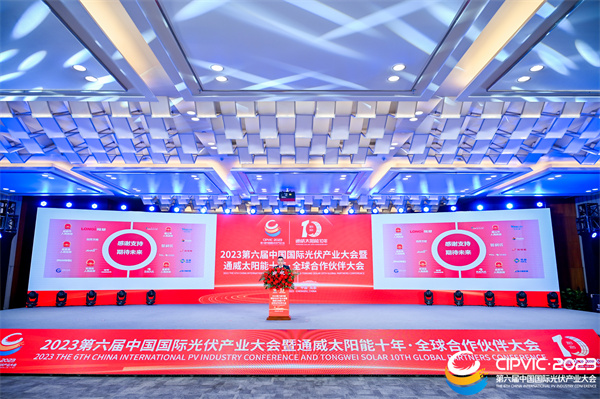 11月13日,2023第六屆中國國際光伏產業大會暨通威太陽能十年·全球合作伙伴大會在成都隆重舉行。今年是通威太陽能創立的第十年,通威太陽能穩健快速發展的背后,離不開各級政府、合作伙伴和社會各界的關心與支持。大會以“筑夢雙碳 智創未來”為主題,在這場全球光伏盛會上,光伏行業大咖、頂級專家、全球光伏企業精英齊聚蓉城,共同探討行業前沿技術,洞見光伏發展未來。