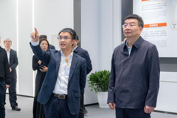 在通威太陽能眉山基地智能制造中心,姚總向調研組 一行詳細介紹了通威太陽能的發展歷程、產能規模、市場占有率、企業榮譽等情況。隨后,調研組一行進入智能制造生產車間,近距離觀摩IGV小車、機械臂等智能化設備運行情況,實地感受通威太陽能生產設備自動化水平。