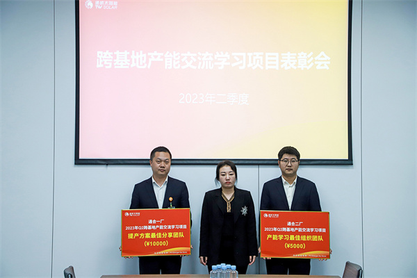 為響應通威太陽能計劃部推出的產能學習及賦能激勵辦法,提升通威太陽能整體產能利用率,通合新能源項目積極參加跨基地產能交流學習,并在此過程中積極提出提產方案,取長補短,實現產能提升。10月11日,通合新能源組織開展二季度產能學習及賦能項目行為激勵頒獎儀式,通合新能源總經理助理羅曉云出席活動并對此階段交流學習過程中表現優異,成績突出的團隊及優秀個人進行頒獎。