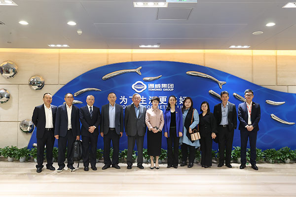 10月16日,馬來西亞金獅集團執(zhí)行董事長丹斯里鐘廷森,四川省僑聯(lián)主席劉以勤、副主席楊東,四川省僑聯(lián)二級巡視員、省僑商聯(lián)合會秘書長余文彬一行蒞臨通威參觀交流,通威集團禚玉嬌總裁、副總裁胡榮柱熱情接待并座談。