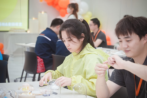 本次生日會主題為“海膽小夜燈DIY”“陽光戳戳樂”。海膽,孕育于深不可測的大海,一身鋒芒,難以靠近。而燈,象征著希望和光明,溫暖明亮,愛意融融,看似毫不相關的兩者,通過溫潤的木頭結合在一起,卻帶給我們一個靜謐而平和的世界。壽星們通過各自的巧手將海膽、貝殼、珍珠、燈帶等進行自制搭配,每個人都制作出了獨一無二的小夜燈,為自己送上了最好的禮物;以針為筆,用線織夢,感受傳統民俗的魅力。小小的戳針遇上了壽星們靈巧的雙手和獨特的思維創意,發生了一場色彩與藝術的碰撞。隨后,壽星們分享蛋糕、同唱生日歌,在歡聲笑語中落下了本次活動的帷幕。