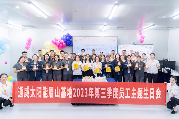 為進一步增強員工歸屬感、營造溫暖和諧的職工氛圍。9月20日至22日,通威太陽能成功舉辦第三季度員工生日會。通威太陽能總經理助理陳君、通合新能源總經理助理羅曉云蒞臨活動現場,代表公司向員工們送去生日祝福與關懷,和壽星們歡聚一堂,共度歡樂時光。